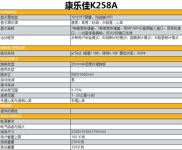 儀表顯示:時間、速度、坡度、距離、熱量、心率等功能